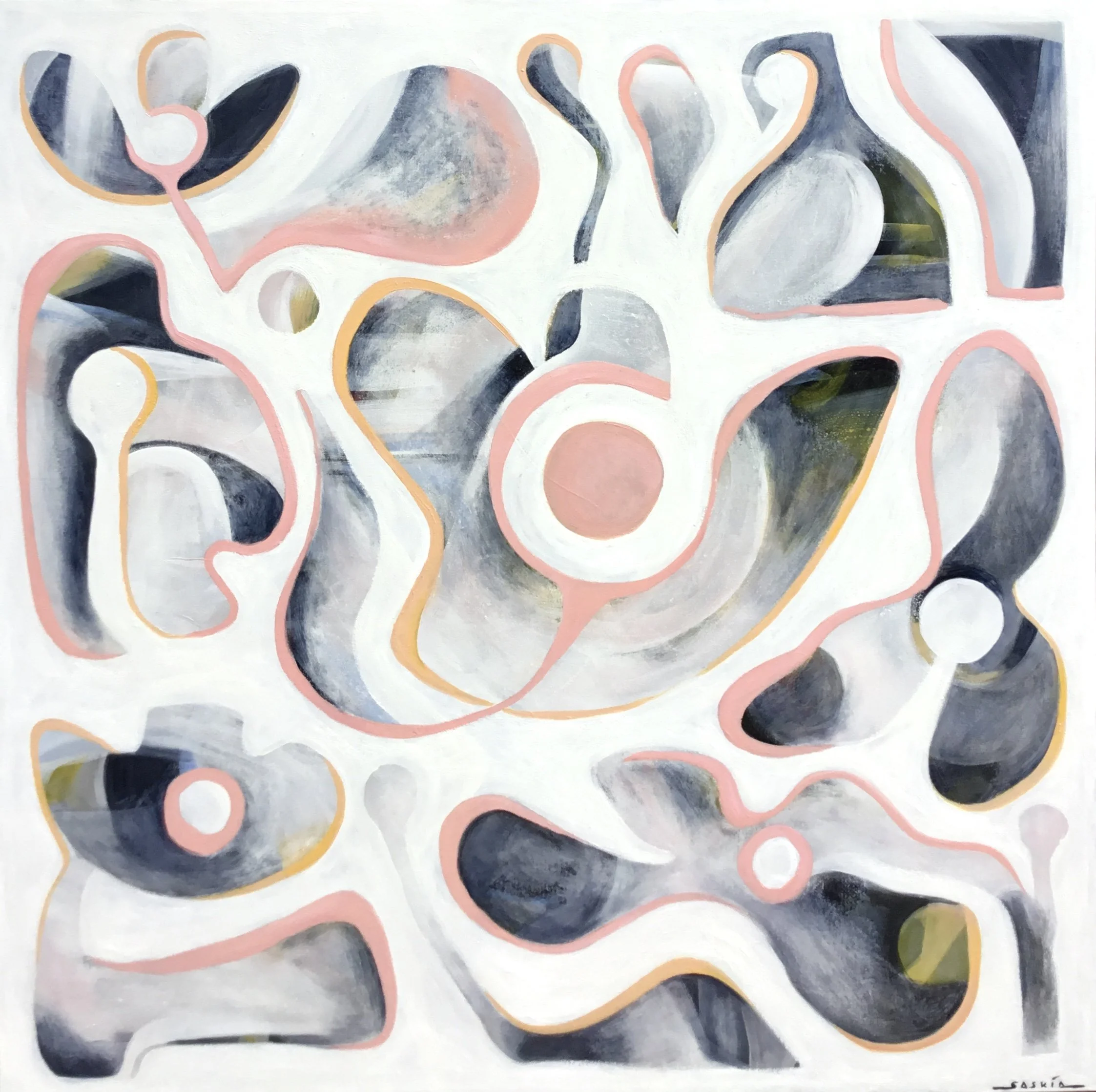 IN BLOOMOil & Mixed media on canvas102 x 102cmCustom framed in white wash, shadow box tassie oak frame$2200 Enquire
